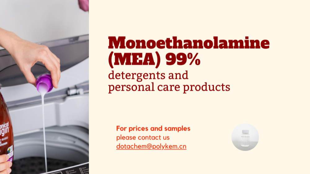 Моноэтаноламин MEA 99%это бесцветная, гигроскопическая и средняя жидкость с небольшим запахом аммиака. Его уникальные химические свойства проистекают из комбинации аминных групп и гидроксильных групп, что делает его очень универсальным компонентом во многих отраслях, особенно в областях моющих средств и продуктов личной гигиены.